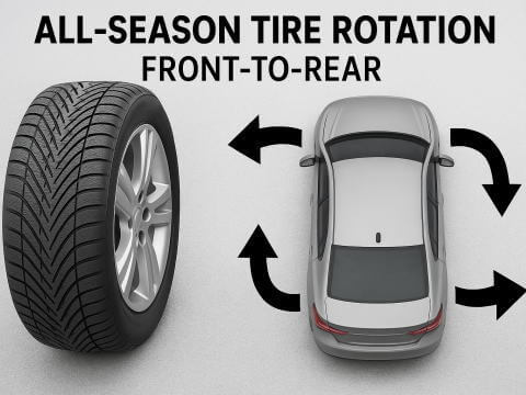 まとめると、V字パターンなど方向性のあるオールシーズンタイヤのローテーションは、前後のみの入れ替えが基本で、左右は固定です。進行方向マークを必ず守り、定期的な点検を行うことで、雨天時や雪道でも高い安全性を維持しながら、タイヤ寿命を最大限に延ばすことが出来ます。