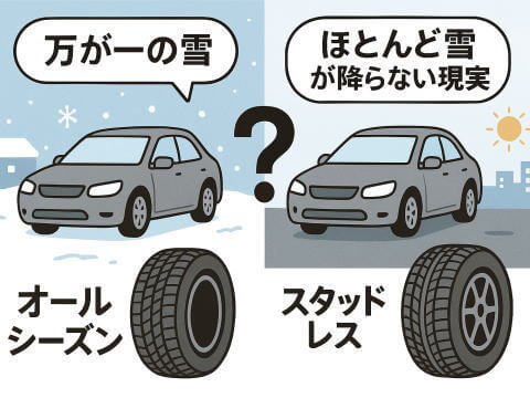 雪が降った日にはクルマに乗らず、電車やバスに切り替えられる生活なら、オールシーズンは合理的な選択になります。逆に、早朝からクルマを使わないといけない人や、冬でも山間部へ出かけることがある人、あるいは過去に雪道で立ち往生した経験がある人にとっては、スタッドレスは心からの安心に繋がります。