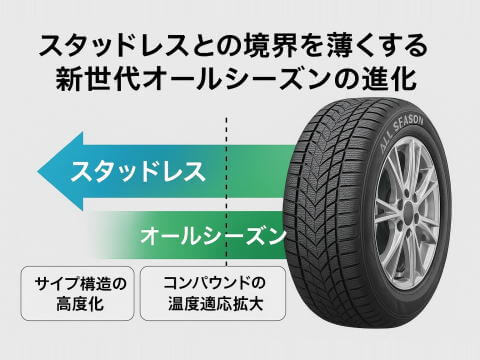 近年のオールシーズンタイヤは、従来の夏タイヤに冬性能を少し加えた便利な選択肢という枠を超え、スタッドレスタイヤとの差が徐々に薄れていく新しい段階へ進化しています。